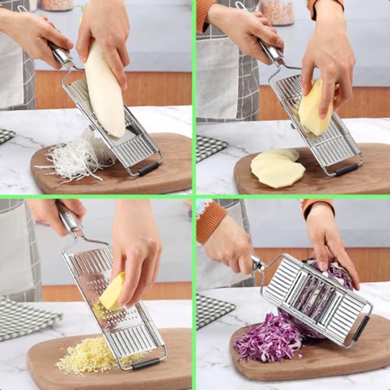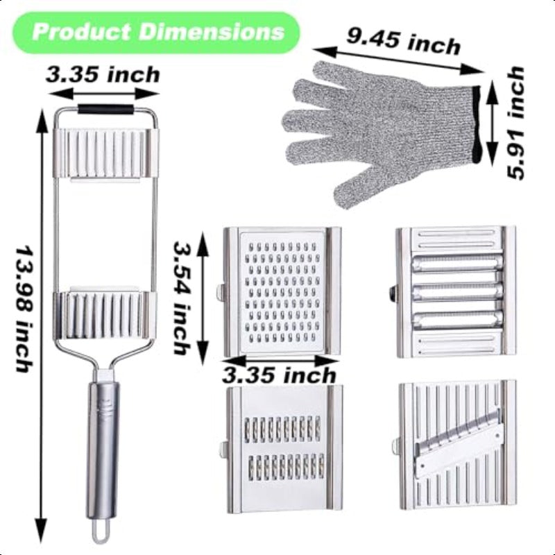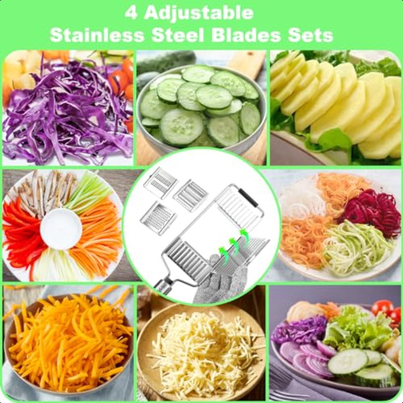 ✅ 4-in-1 Functionality – Slice, shred, grate, and julienne with one compact tool.✅ Premium Stainless Steel Blades – Razor-sharp, rust-resistant, and built to last.
